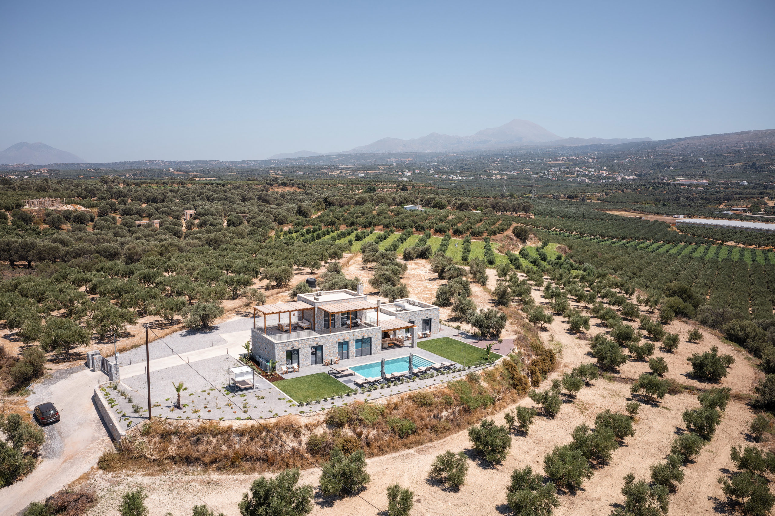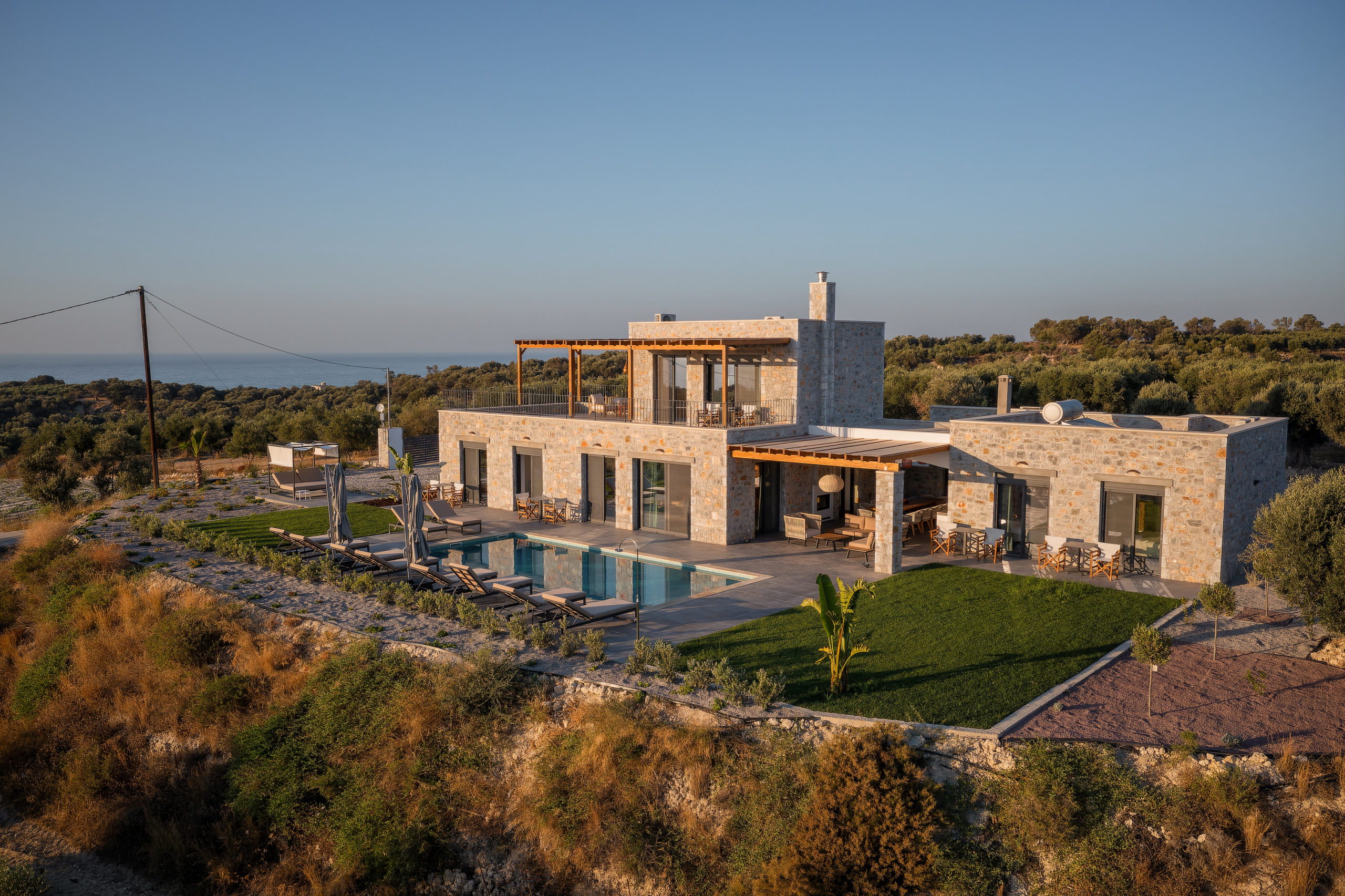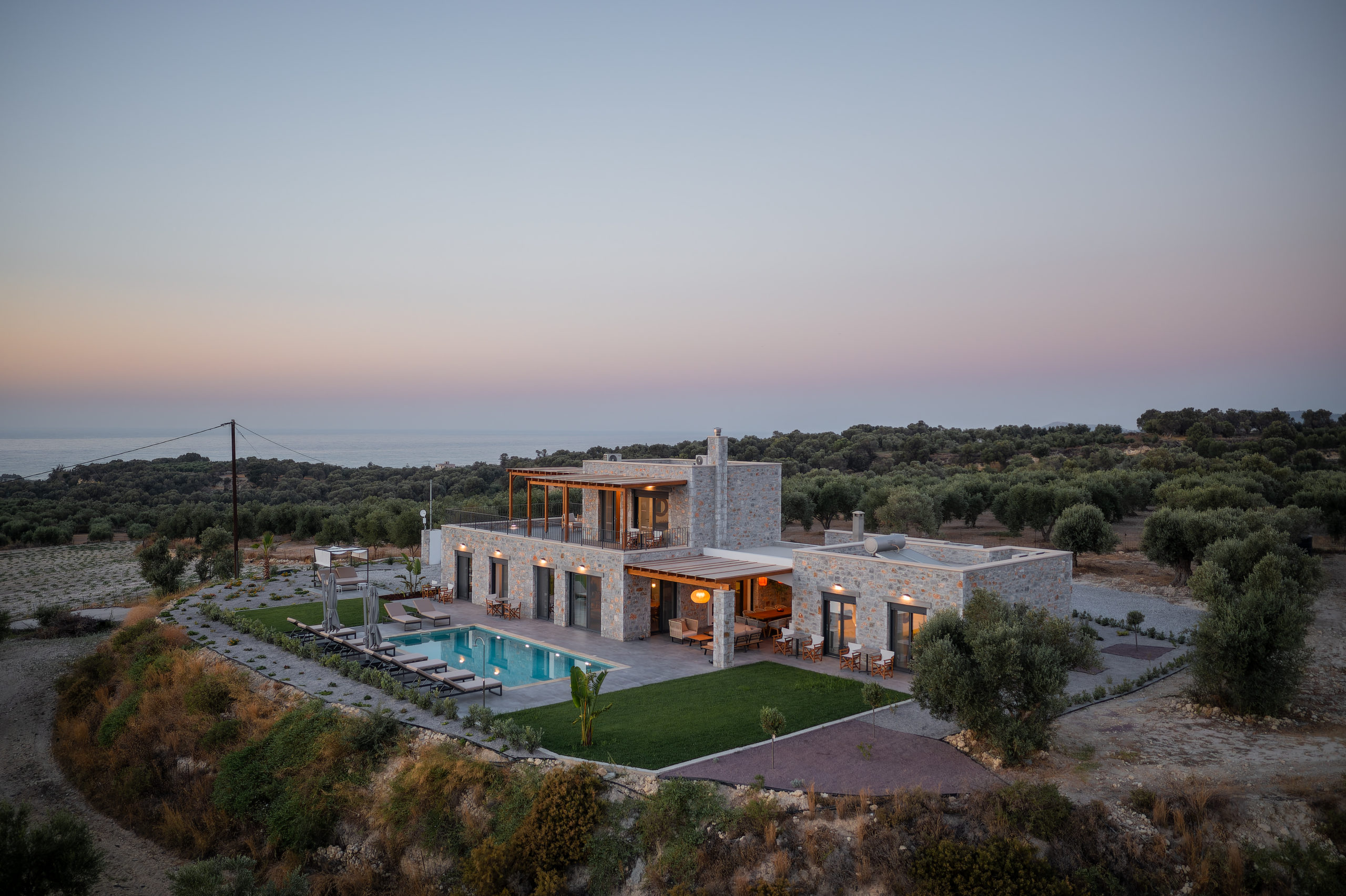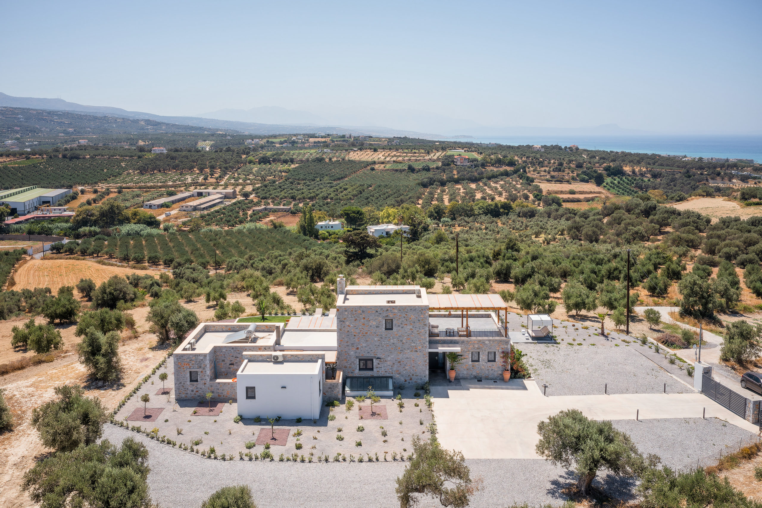 Auf einem paradiesischen Fleckchen Erde, inmitten alter Olivenbäume, wurde der Bau 2021 begonnen und im Herbst 2022 fertiggestellt. Die Grün- und Außenanlagen wurden geplant und werden im Frühjahr 2023 umgesetzt und liebevoll arrangiert. Die Moderne trifft auf Tradition, so könnte man den architektonischen Stil des Gebäudes wohl am besten beschreiben. Entworfen von einem griechischen Architekten gepaart mit den Ansprüchen der deutschen Bauherren, ist ein komfortables Feriendomizil entstanden.