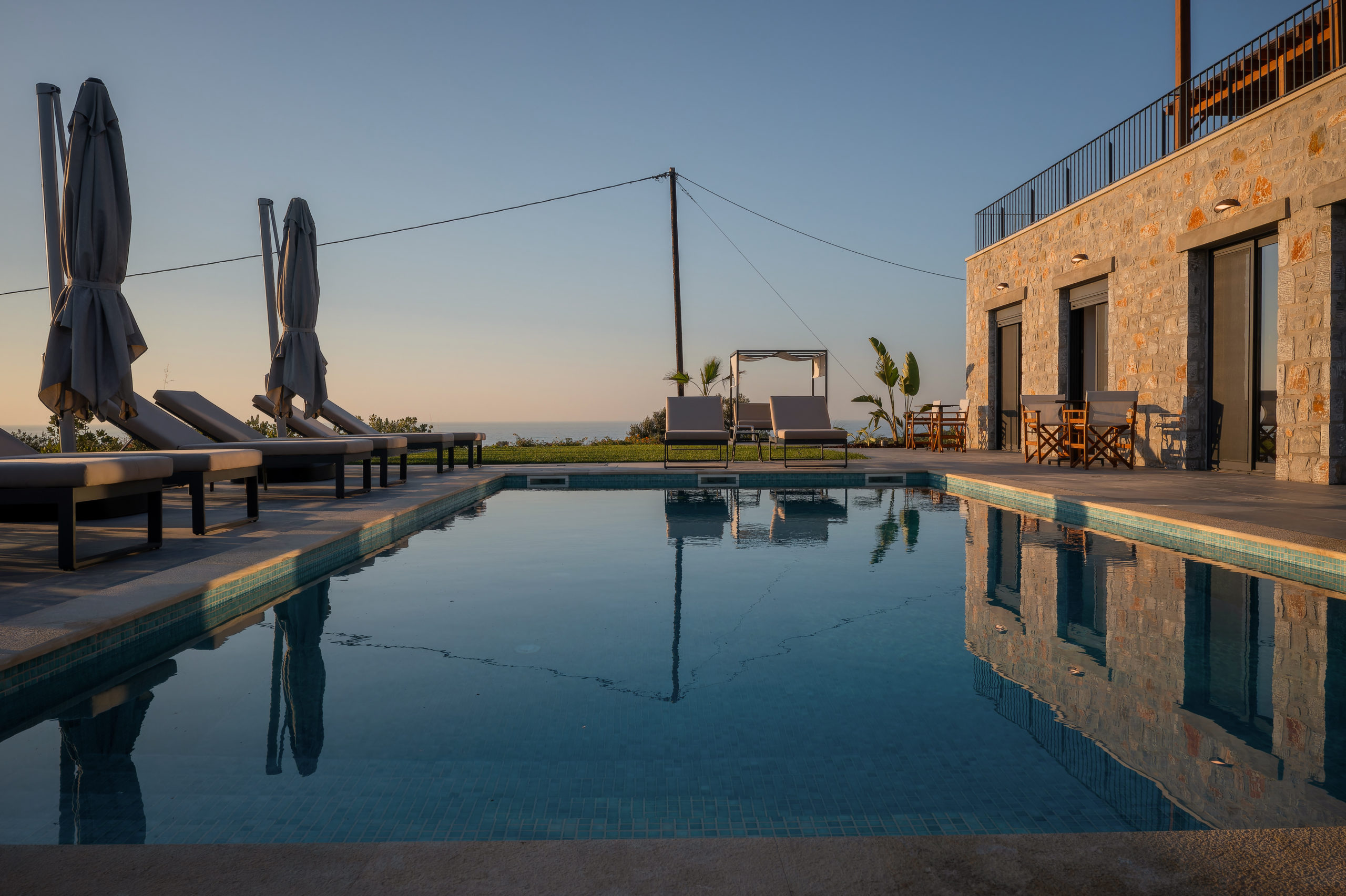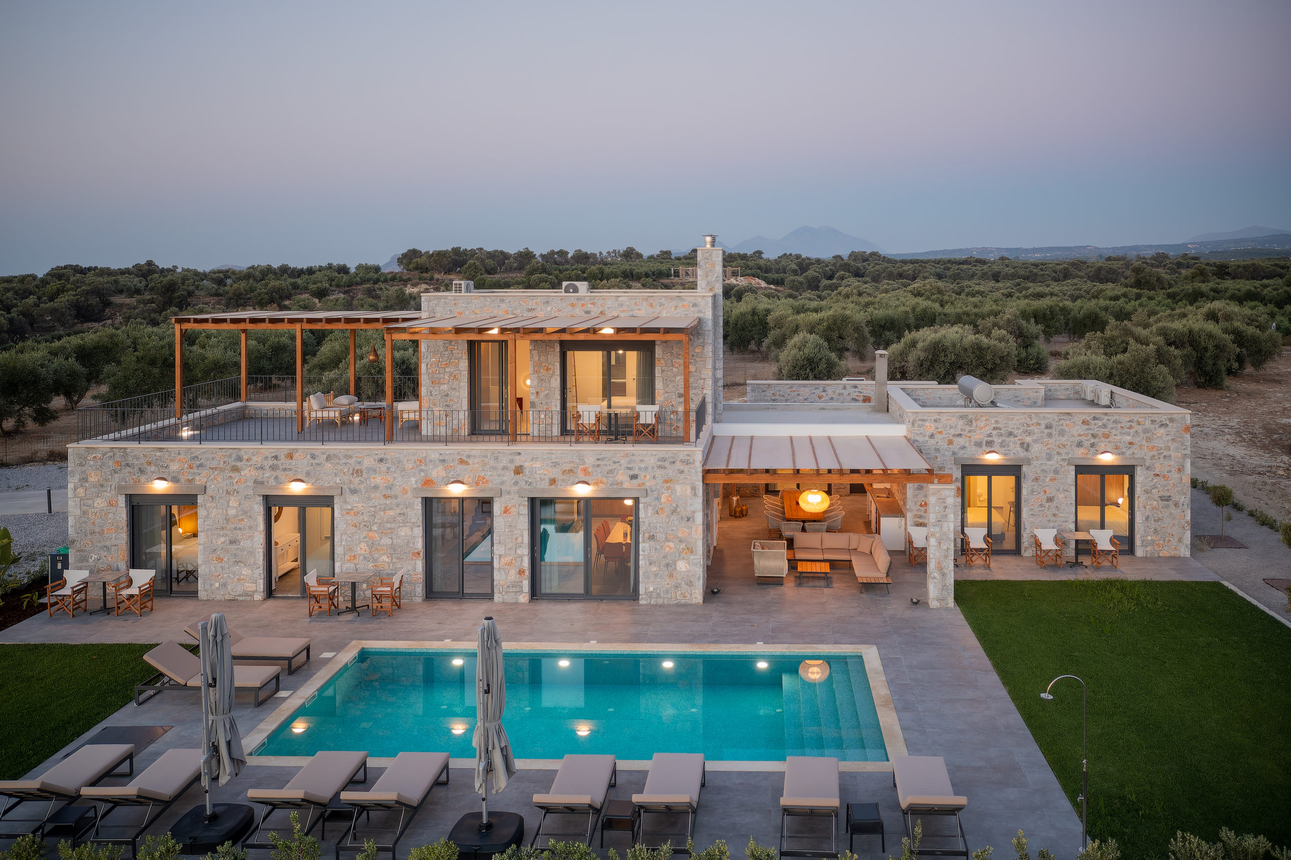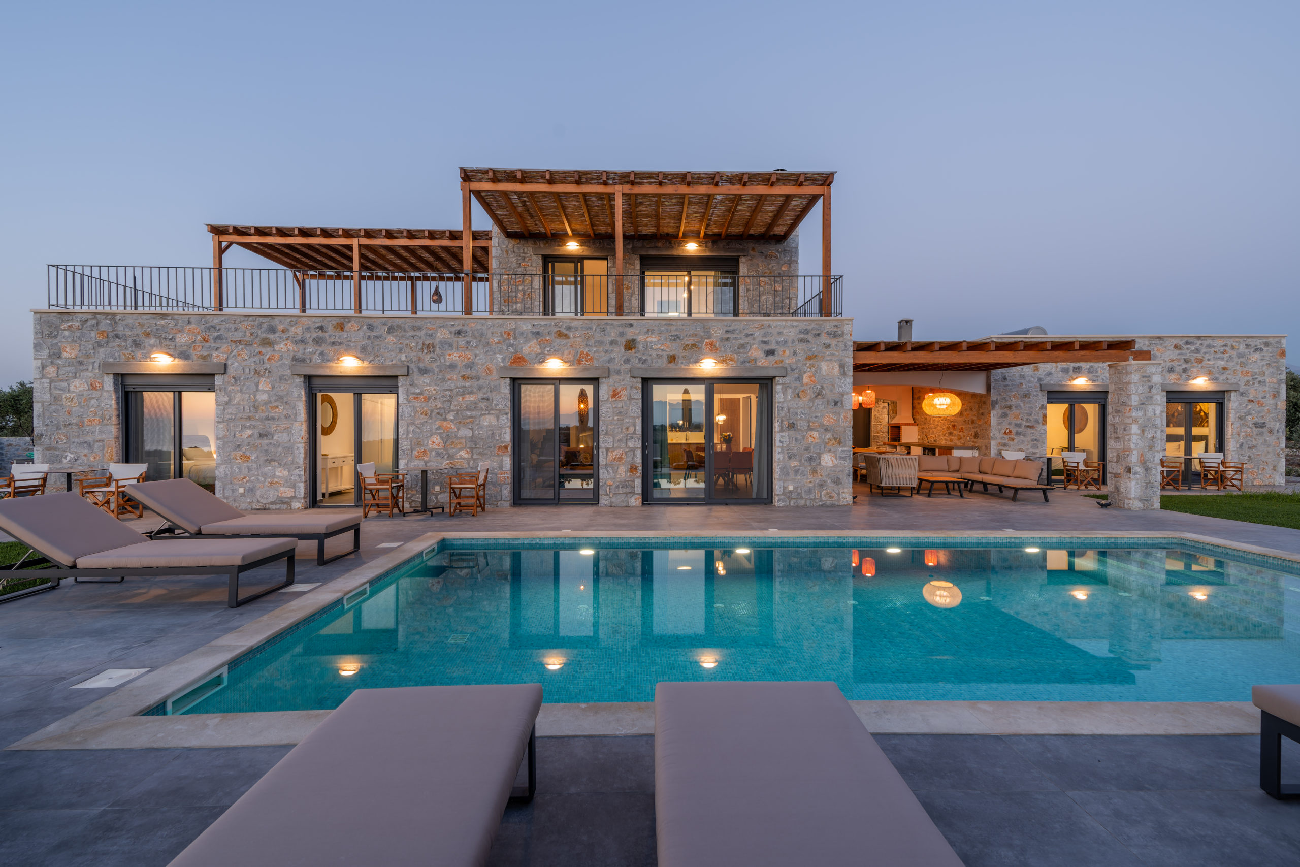 Auf einem paradiesischen Fleckchen Erde, inmitten alter Olivenbäume, wurde der Bau 2021 begonnen und im Herbst 2022 fertiggestellt. Die Grün- und Außenanlagen wurden geplant und werden im Frühjahr 2023 umgesetzt und liebevoll arrangiert. Die Moderne trifft auf Tradition, so könnte man den architektonischen Stil des Gebäudes wohl am besten beschreiben. Entworfen von einem griechischen Architekten gepaart mit den Ansprüchen der deutschen Bauherren, ist ein komfortables Feriendomizil entstanden.