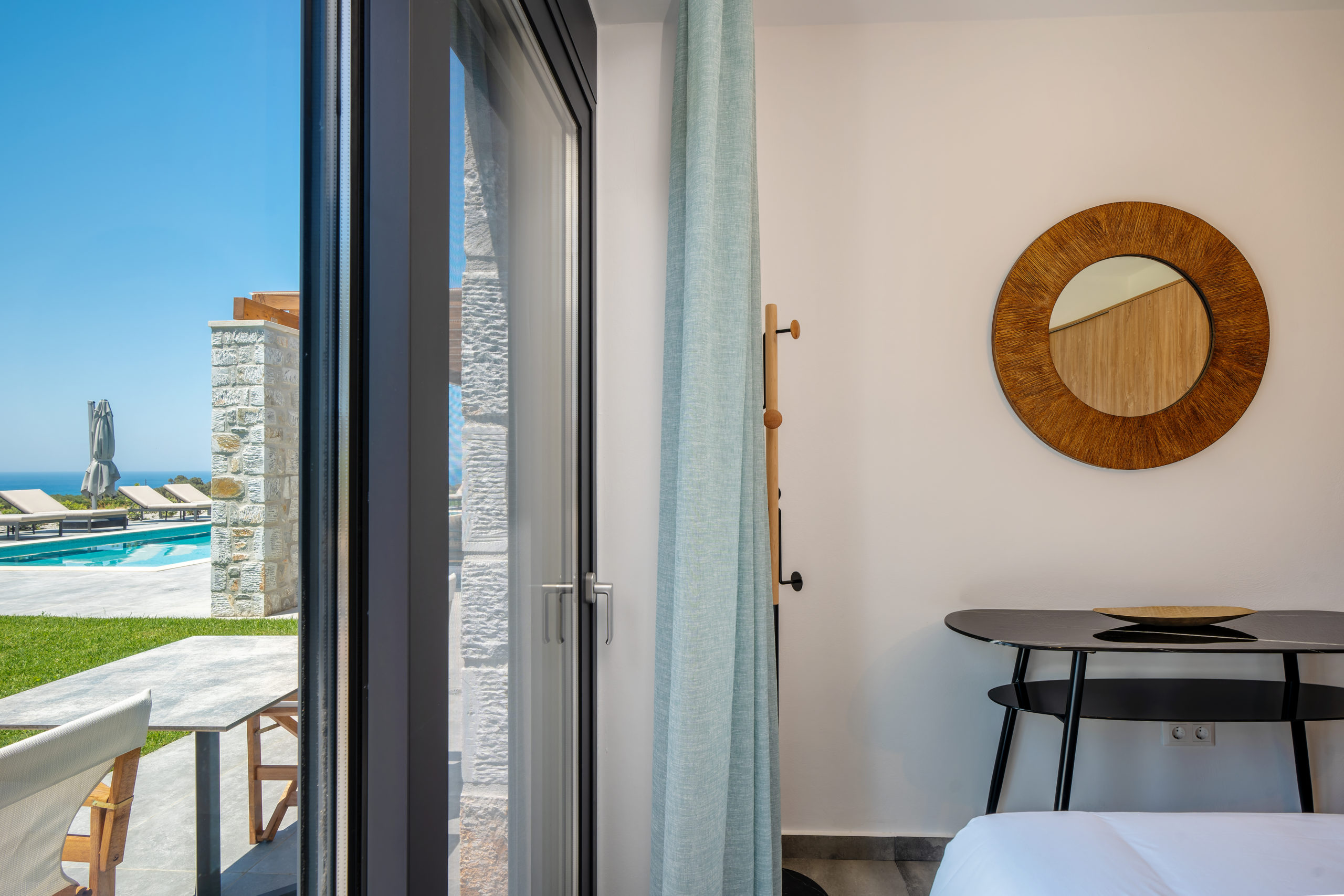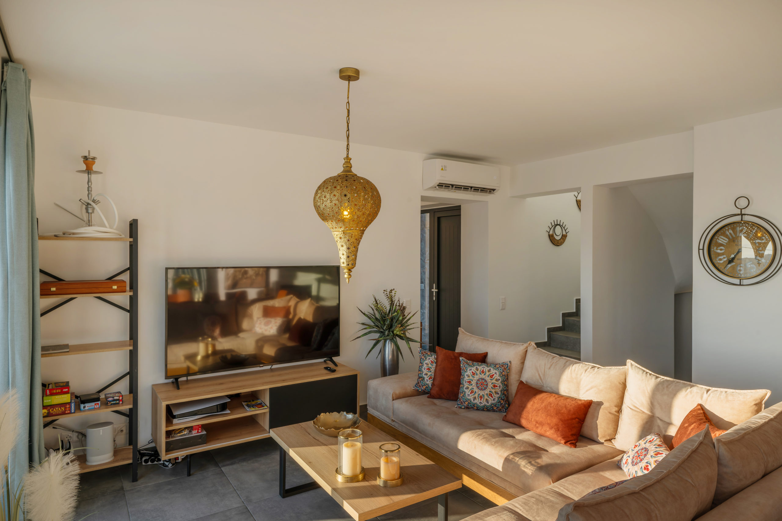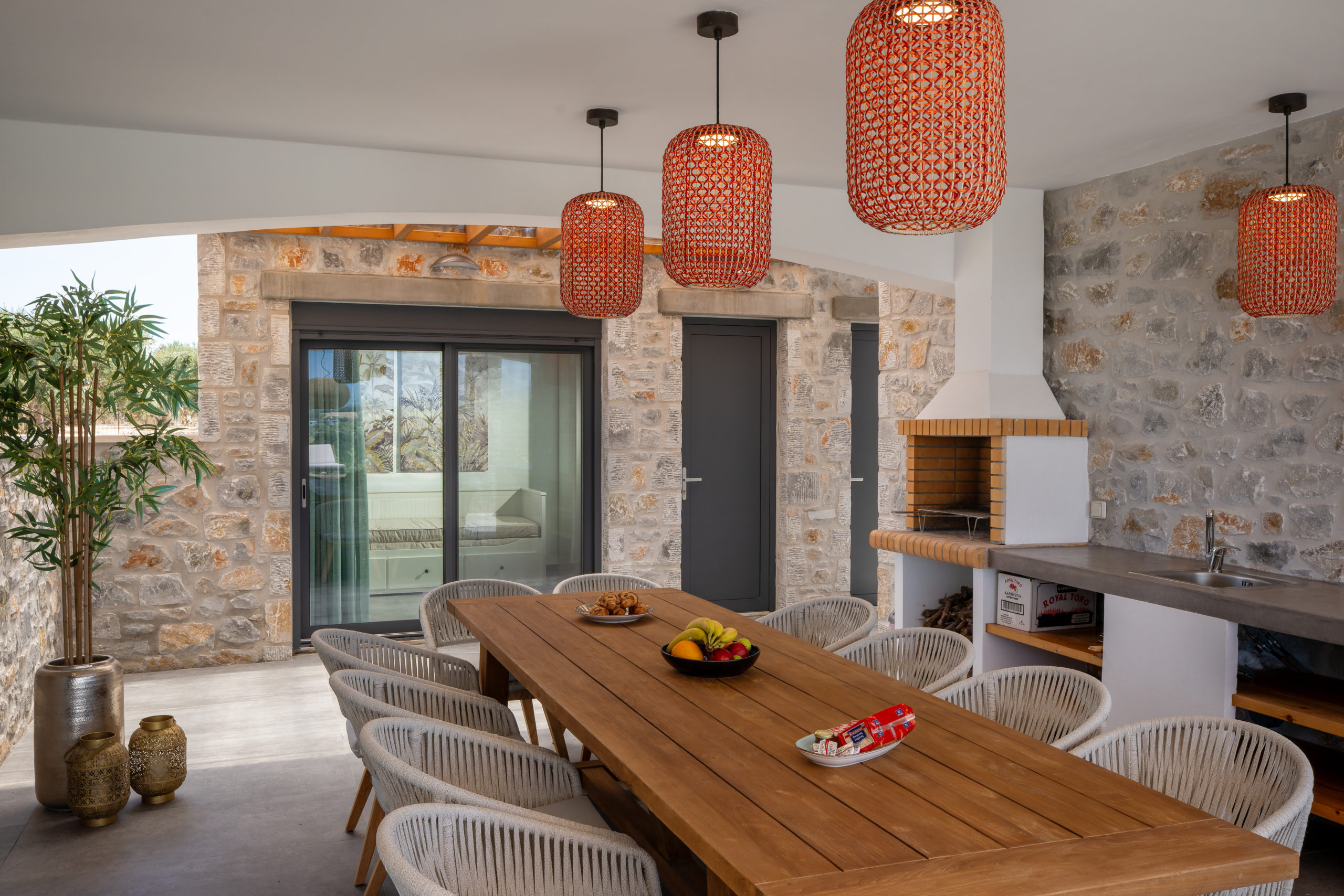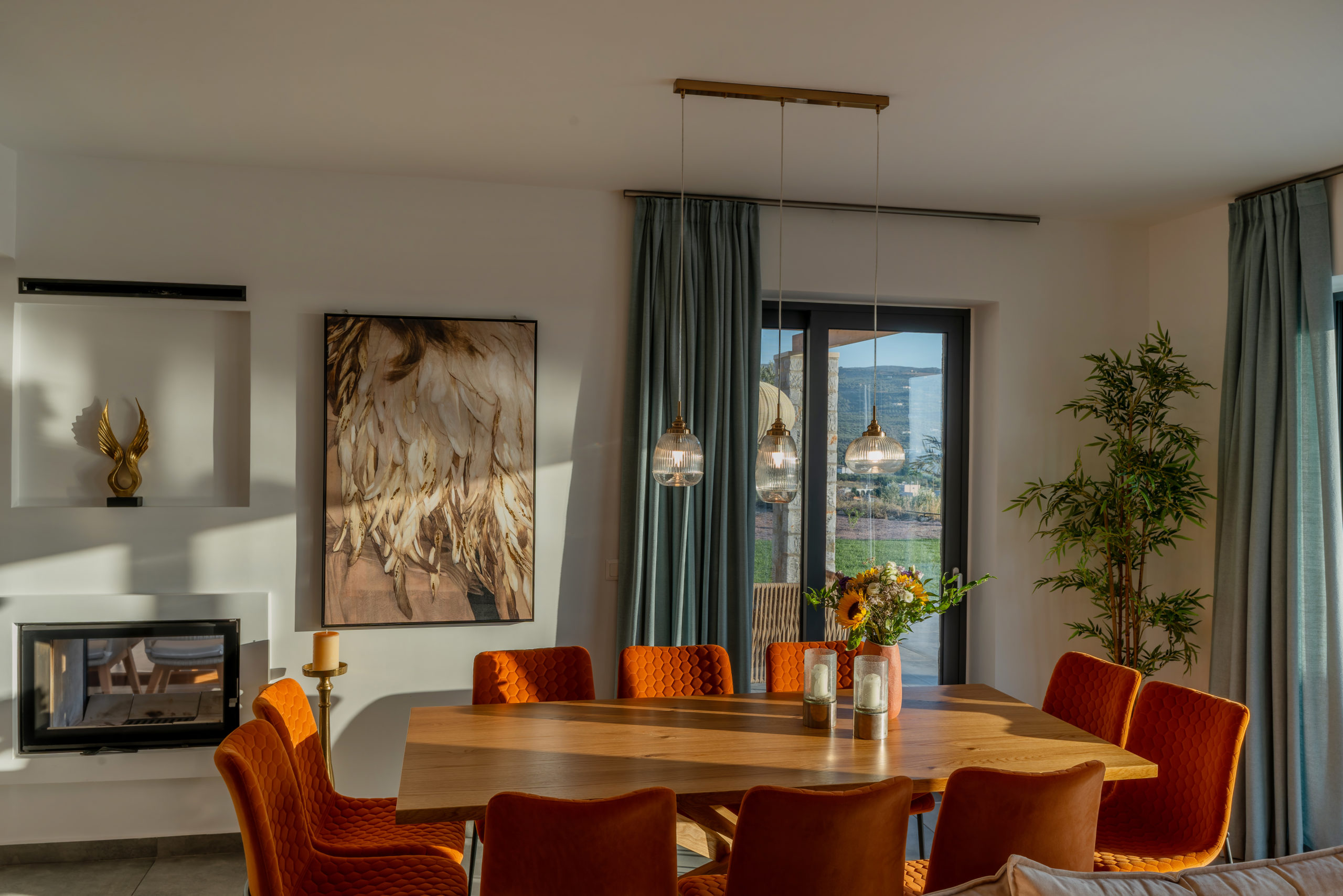 Auf einem paradiesischen Fleckchen Erde, inmitten alter Olivenbäume, wurde der Bau 2021 begonnen und im Herbst 2022 fertiggestellt. Die Grün- und Außenanlagen wurden geplant und werden im Frühjahr 2023 umgesetzt und liebevoll arrangiert. Die Moderne trifft auf Tradition, so könnte man den architektonischen Stil des Gebäudes wohl am besten beschreiben. Entworfen von einem griechischen Architekten gepaart mit den Ansprüchen der deutschen Bauherren, ist ein komfortables Feriendomizil entstanden.