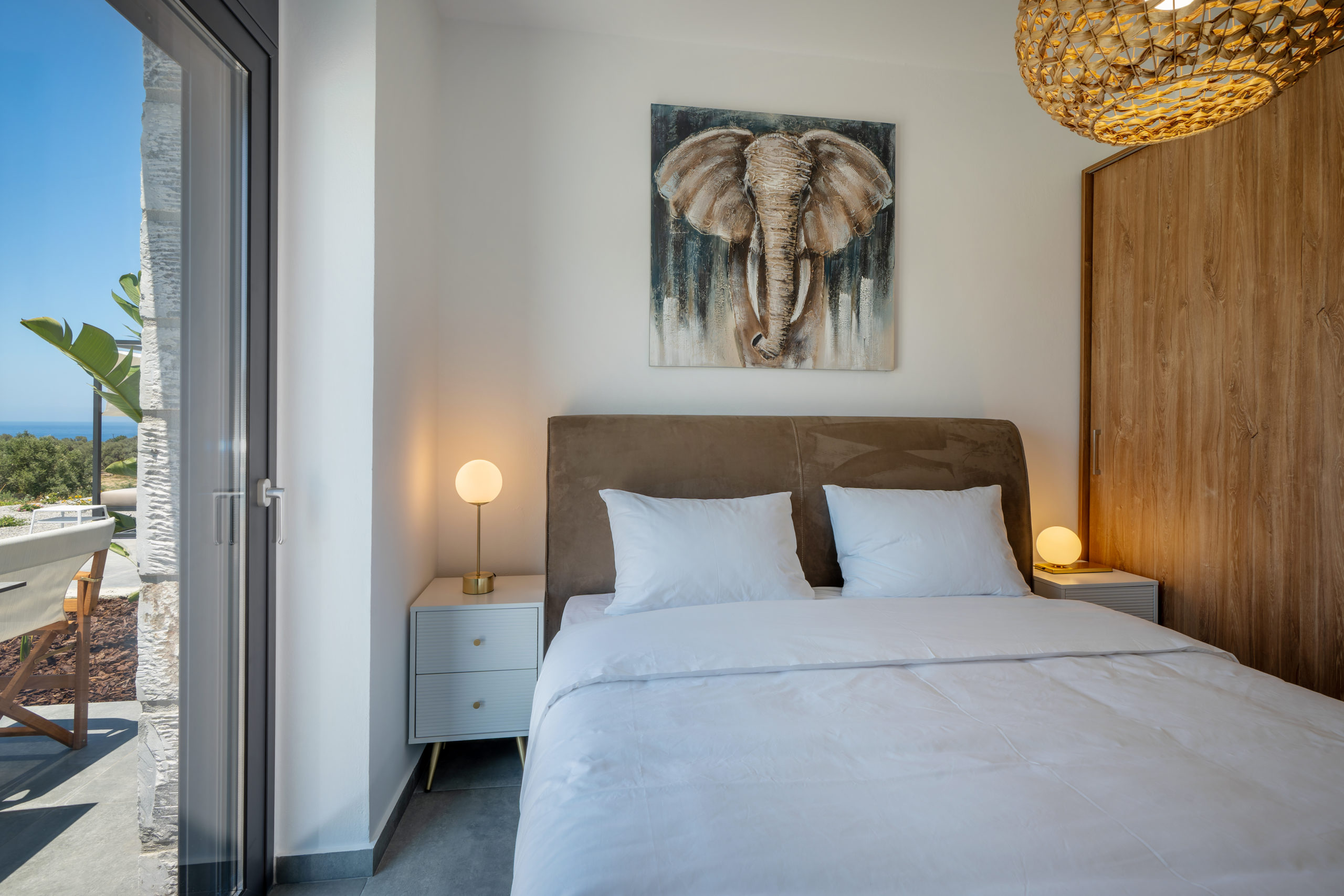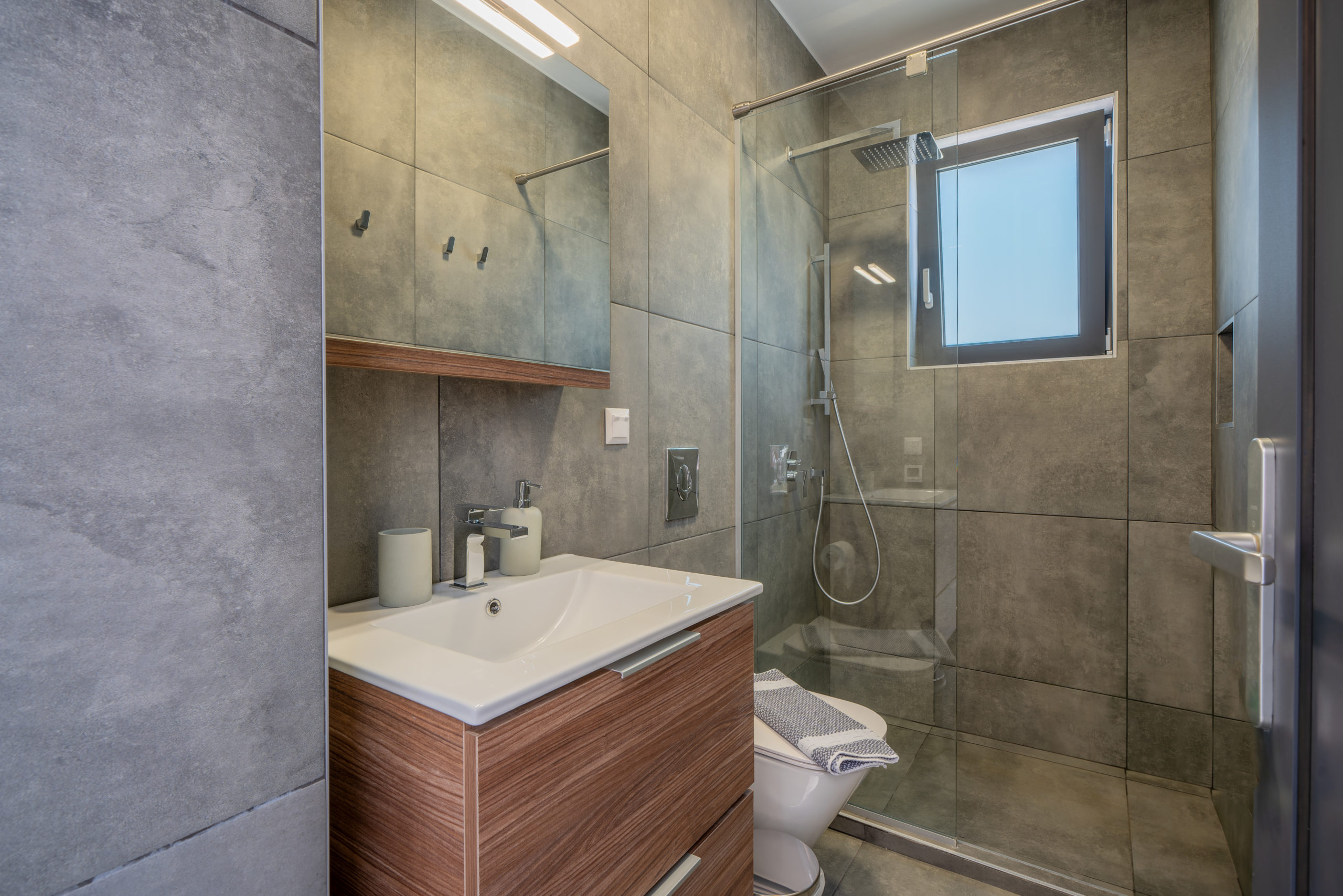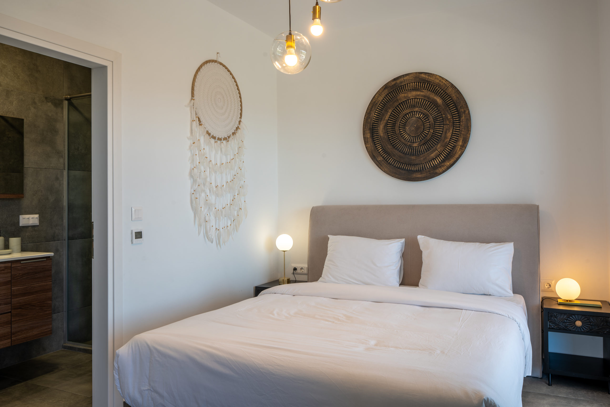 Im Obergeschoss befindet sich ein weiteres Schlafzimmer und ein Bad mit derselben Ausstattung wie im Erdgeschoss. Im Obergeschoss befindet sich eine mit einer Pergola überdachte Dachterrasse, die Sie abends mit einem fantastischen Blick über die nahegelegene beleuchtet Stadt Rethymnon und die Küstenlinie belohnt.