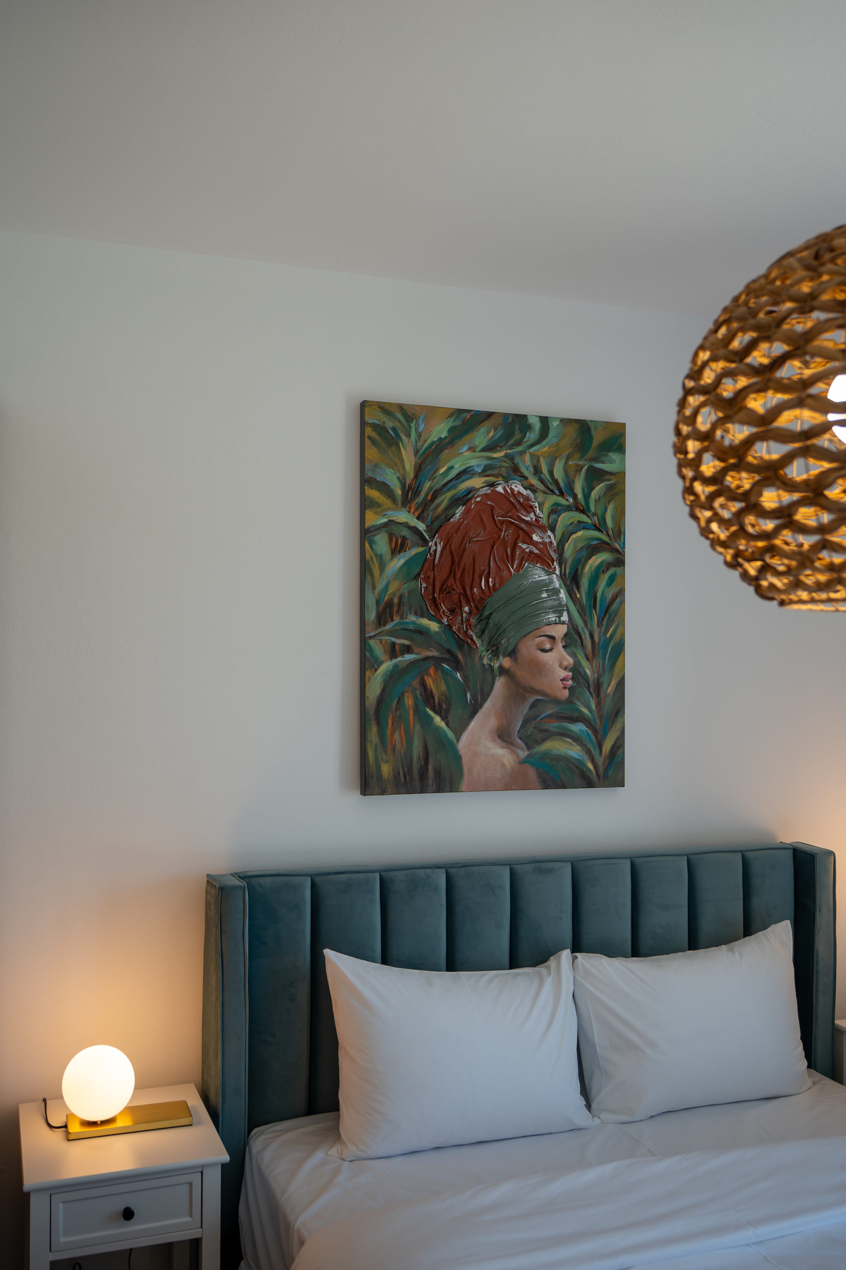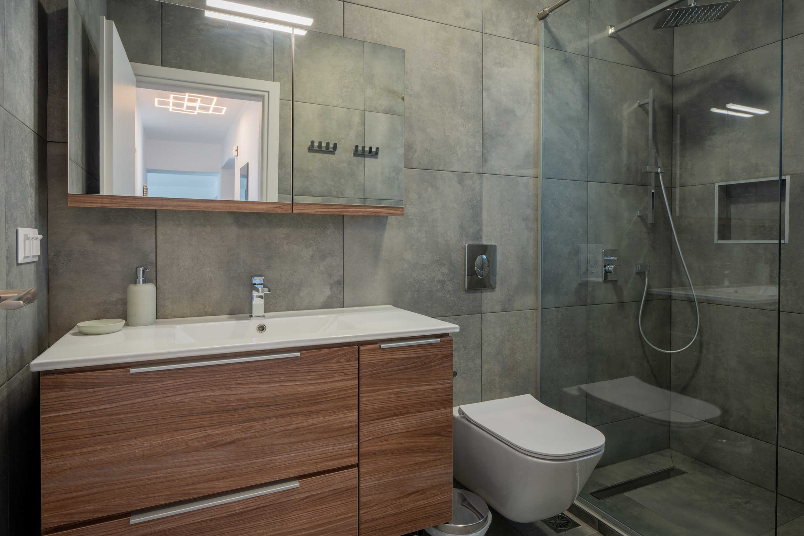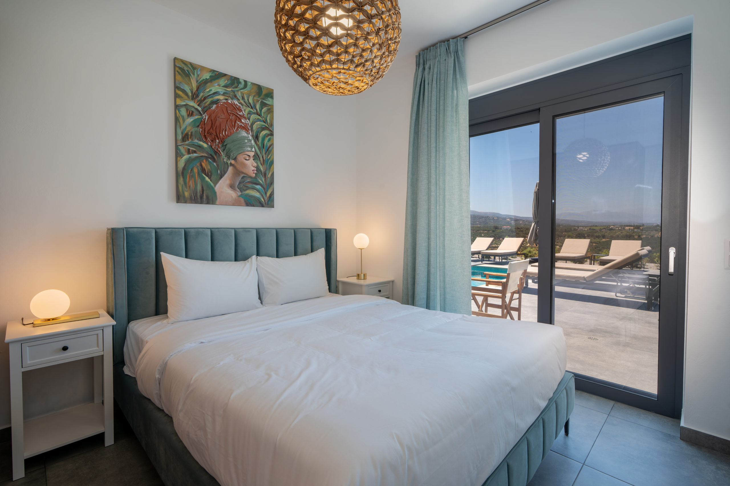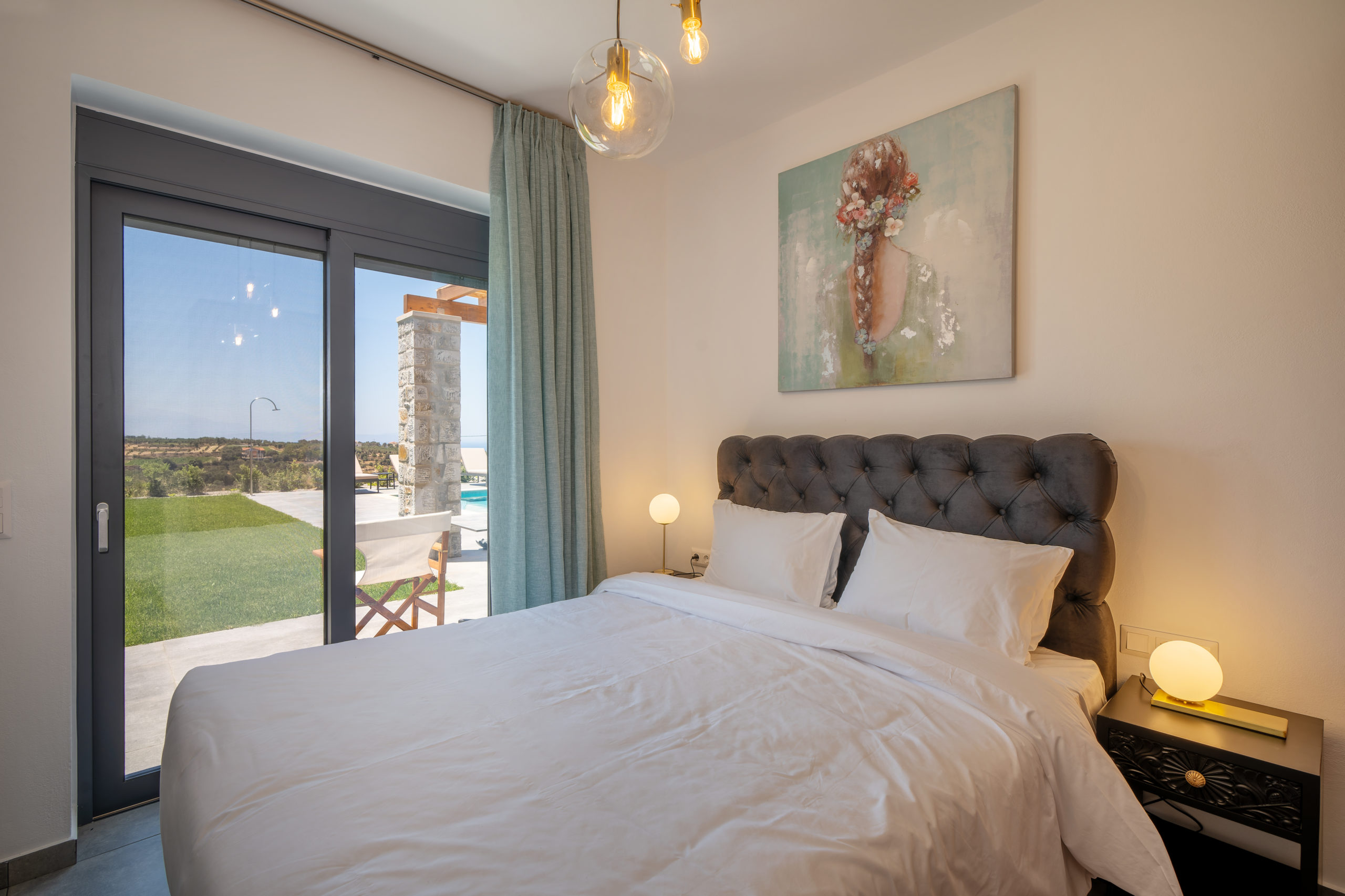 Im Obergeschoss befindet sich ein weiteres Schlafzimmer und ein Bad mit derselben Ausstattung wie im Erdgeschoss. Im Obergeschoss befindet sich eine mit einer Pergola überdachte Dachterrasse, die Sie abends mit einem fantastischen Blick über die nahegelegene beleuchtet Stadt Rethymnon und die Küstenlinie belohnt.